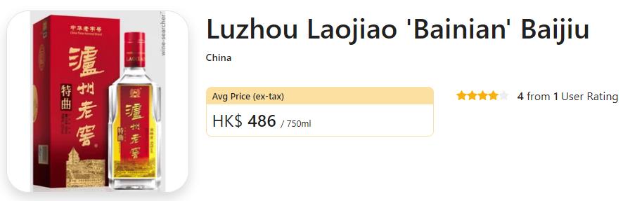 在Wine-Searcher上,百年泸州老窖的平均售价为62美元,约446元人民币。