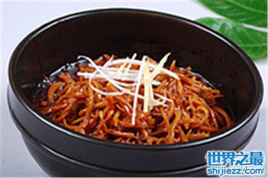 鱿鱼丝是可以单吃的,但是在陕西他们将鱿鱼丝做成了一道名菜,他是传统的菜肴已经有好几百年的历史啦。到现在,无论是游客还是外来的宾客,来到陕西都会要品尝一下生煨鱿鱼丝。肉质就弹性并且口感非常鲜美。受到人们的赞叹。