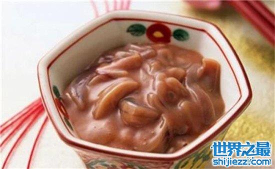 最后的压轴菜的名字叫做盐辛,听名字是不是非常的正常非常清单,但是这种食物是采用各种鱼的内脏,拿盐腌制半年以上才能制作而成!腌制完成之后,会有一种糜烂的味道,极其的恶心!今天日本十道最恶心的菜就为大家介绍到这里了,如果想要了解更多那么就快去世界之最网搜索吧!