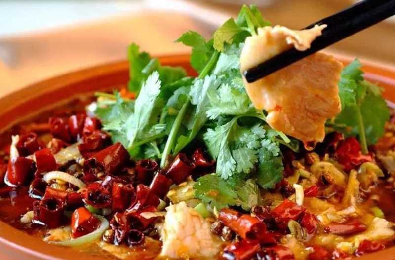 9.水煮肉片:将瘦肉切成大片,用料酒、蛋清、干淀粉和盐腌制。锅内放油,加入葱末、姜蒜片和豆瓣酱炒香,加水和盐煮开后放入配菜焯熟,再将肉片放入锅中烫熟,最后撒上花椒辣椒末,浇上热油。