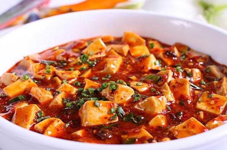 2.麻婆豆腐:将豆腐切成小块,锅内放油烧热后加入豆瓣酱和花椒炒香,再放入豆腐块轻轻翻炒,加入清水煮开后放入肉末和姜蒜末,最后勾芡收汁撒上葱花。