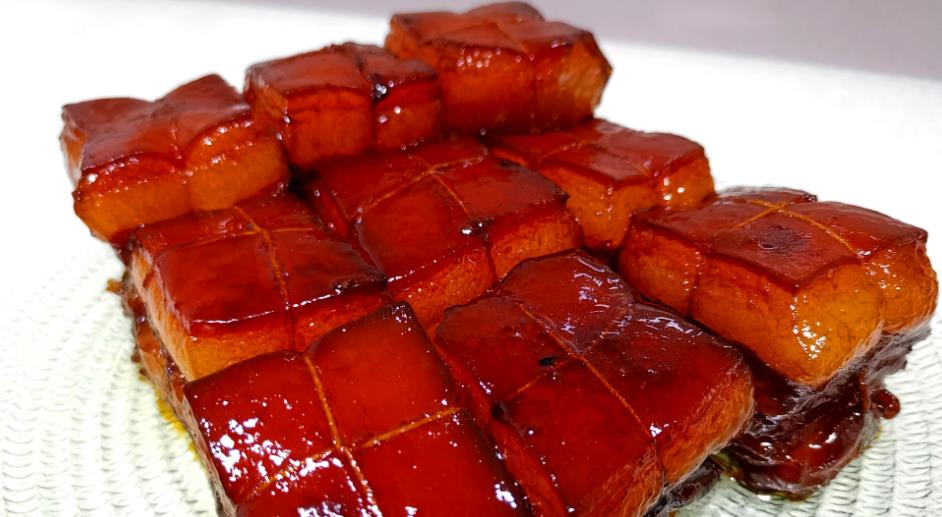 它的产地是四川眉山,选用五花肉为主要原料。做法是将五花肉切成方块,焯水后加糖、酱油、料酒等烧制而成。