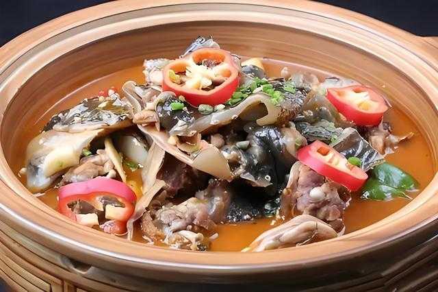 荆沙甲鱼是一道荆州的传统名菜,取之于洞庭湖的野生甲鱼为主料,经精心烹制而成的。荆州甲鱼这道菜源远流长,战国末年,《楚辞·大招》中开列的宴席单,列有较多的水鲜菜式,其中尤以荆沙甲鱼最具风味。甲鱼历来都是公认的滋阴凉血润燥之品。