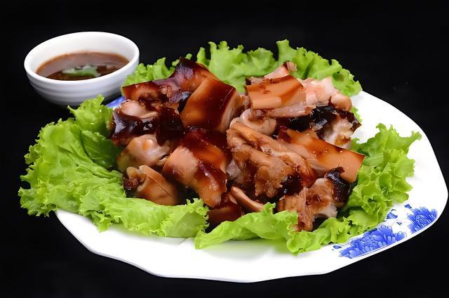 酱猪蹄是我国的传统菜肴,满汉全席中的一道名菜,传入山东后,吸收了当地的饮食特色,发展成青岛当地有名的小吃。此小吃的特点是:猪蹄骨肉分离,恰到好处,肉软烂又有嚼头,香而不腻。