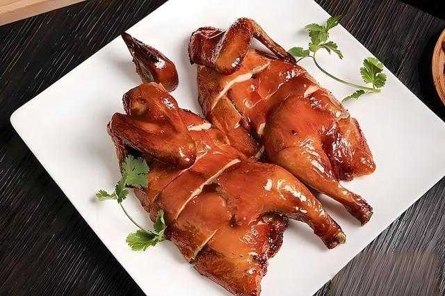 腊杆子烧鸡是青岛平度市的经典名吃,清末时期,平度陈记烧鸡店的第三代传人陈福先,在烤烤制过程中加入独特的腊木,使得炉中烧鸡充分烧制,融入了腊木的清香,因此得名“腊杆子烧鸡”,有着“色”“香”“味”“干”等特点,被誉为四绝。