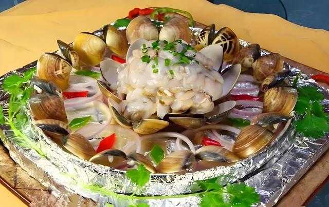 “天下第一鲜”即跳炒文蛤,因爆炒时,文蛤犹在锅中快速飞舞跳动而得名。因蛤肉富含氨基酸与琥珀酸,其味鲜而不野,雅而不俗,素有“天下第一鲜”之称。2015年,中天黄海大酒店的“铁板文蛤”,获得省级金牌当家菜称号。