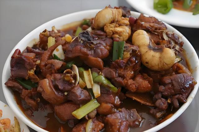 东海老公鸡是江苏省连云港市东海县的特色美食。东海老公鸡早已名声在外,成为东海的一个品牌,系选用农家散养2年以上的草公鸡为原料,佐以辣椒、八角、桂皮等配料,用旺火红烧而成。其口感香辣醇厚,质地柔韧,汤色浓郁,回味悠长。