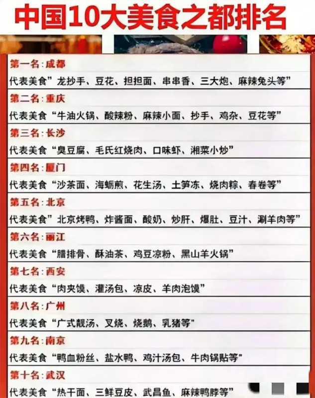 但是北京能排第五名,我确实有些意外,说实话北京我也去过,这些美食大部分只有当地人吃的惯,外地的人都是抱着尝试的态度,基本上吃过后都有些小失望。