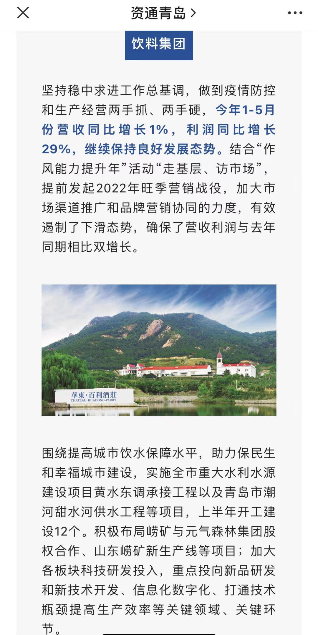 但无法回避的问题是,撇开品牌价值不谈,崂山矿泉水、华东葡萄酒仍旧依赖以青岛为核心的胶东半岛市场,并没有形成与品牌价值相匹配的收入规模。