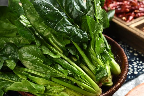 菠菜含丰富的蛋白质、膳食纤维、维生素和矿物质,菠菜里面的维生素和叶酸能抑制皮肤黑色素的形成,含的铁元素有很多,能促进红血球和血红蛋白的增加,有补血的作用。