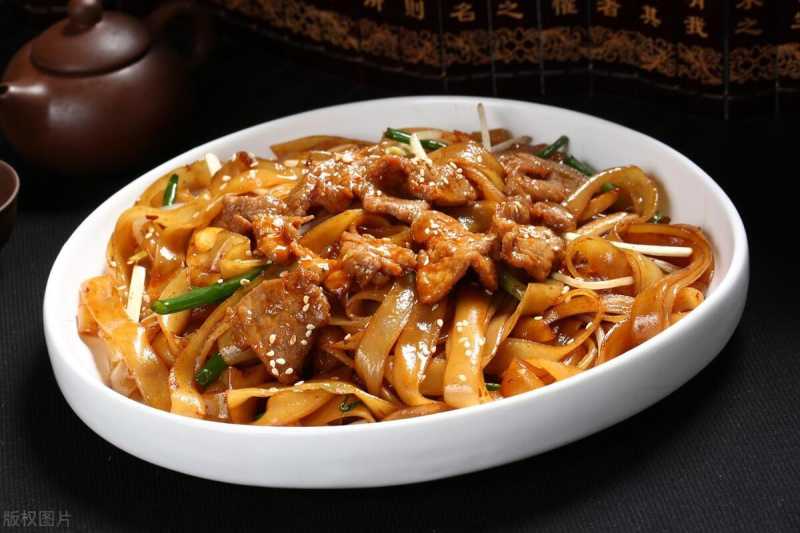 干炒牛河是广州的夜市美食,选用河粉、牛肉、豆芽等食材,大火快炒,色香味俱佳,是夜市中的佼佼者。