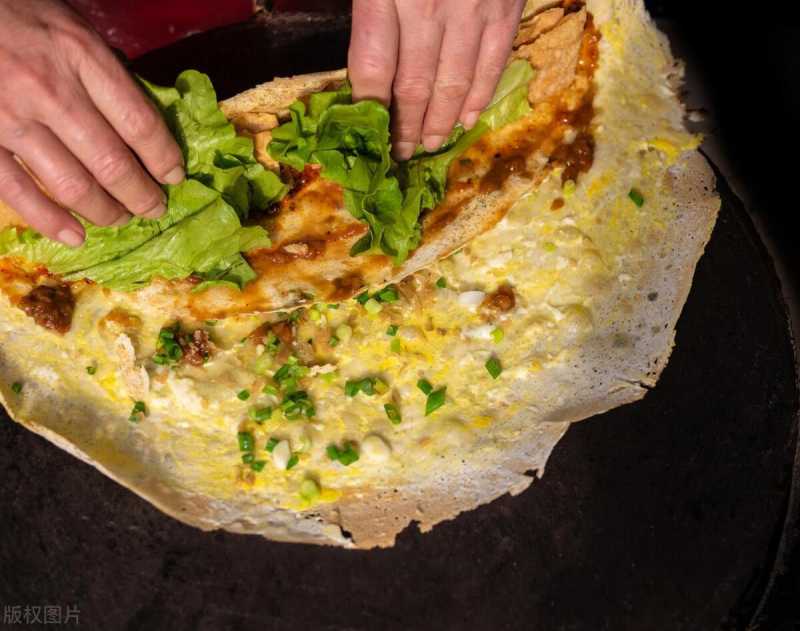 4.煎饼果子:这是一种在天津非常受欢迎的小吃,以绿豆面制成的薄饼搭配脆脆的油条(或馃箅儿)和咸香的鸡蛋,再抹上甜面酱、腐乳等调料,口感丰富多样。