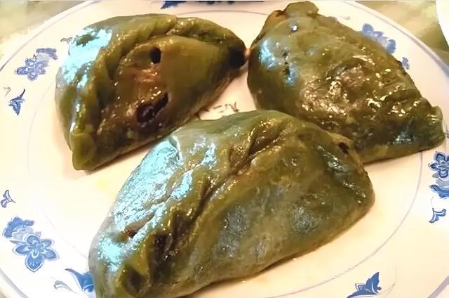 龙岩当地特有的“冬至包”, 当地人又称为“粿糕”、“粿饺”,冬至包是龙岩人独有的传统美食,冬至日必吃,绿绿的面团是由艾草或苎麻叶加入糯米制成。包冬至包,有包金、包银的涵意,代表吃完后能赚大钱。
