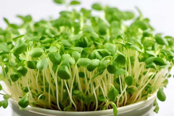 萝卜芽是萝卜种子萌发形成的肥嫩幼苗,因风味独特,品质鲜嫩而受到人们的喜爱,富含维生素B5、维生素C、维生素A和钙、磷等矿物质,其中维生素B5的摄入能够帮助人体吸收多种营养物质,同时也参与类固醇紫质、褪黑激素等人体所需元素的形成。
