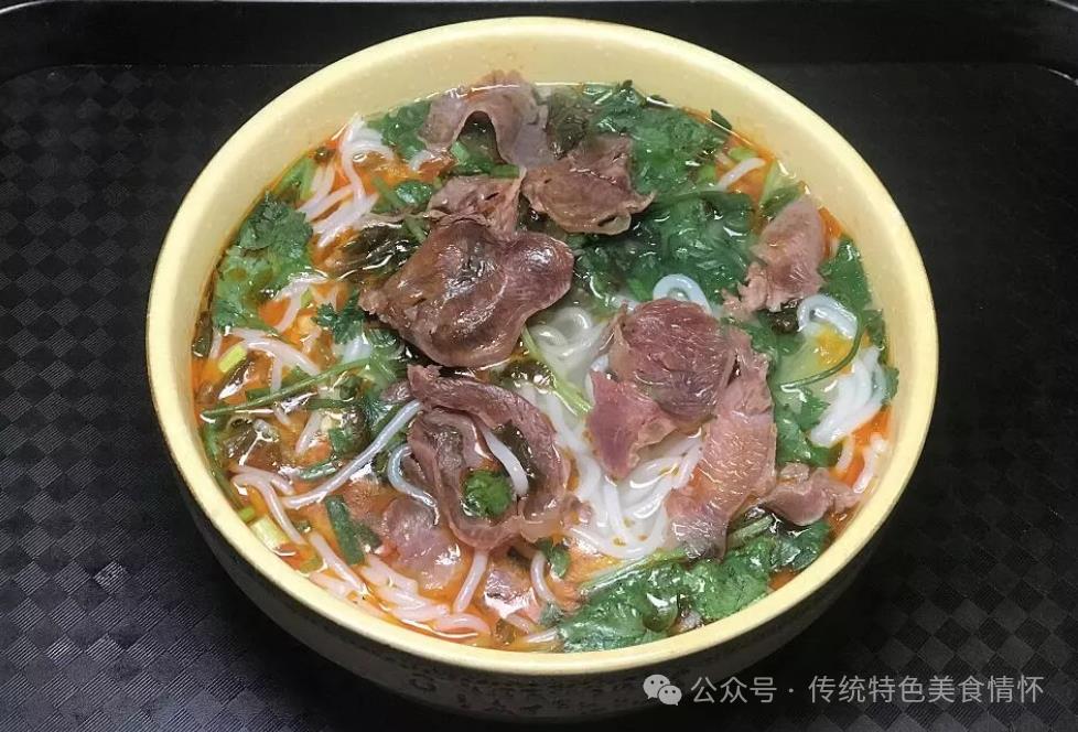 其主要由大米制成的米粉、羊肉汤和馅,以及考究的佐料组成,具有粉鲜、馅鲜、汤鲜的三鲜特色。