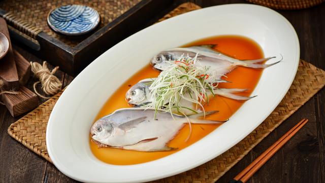 银鲳鱼也叫银盘鱼,远远看去这家伙就是个扁身子,样子跟食人鲳非常像,这种鱼相当娇嫩,几乎离不开水,一离开海域立马就会死亡。另外这种鱼会随着季节变化来回游动,人工养殖的成本极高,并且死亡率也高,因此市面上售卖的银鲳鱼大多都是野生捕捞的。银鲳鱼肉质细嫩,鱼刺也非常少,很受人们欢迎,但价格极其高昂,偶尔吃上一两顿就算不错了。