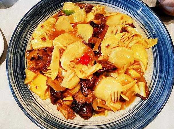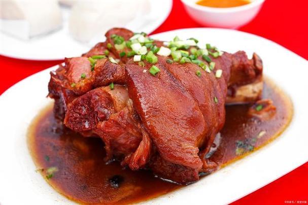 煨肘子是河北唐山的一道特色菜谱,煨肘子是将猪肘子放入开水里焯水捞出洗净,放入干净的锅里,加入高汤,红枣冰糖,枸杞,生抽,老抽,料酒,盐,鸡精,料包,姜块,葱段盖上盖子,用压力锅炖煮1个小时或者用砂锅炖,煨至猪肘熟烂把肘子捞出装盘即可。煨肘子的口感非常不错,软烂入味,肥而不腻,香咸微甜非常好吃。本品具有补中益气、强筋骨之功效,适于中老年骨质疏松症患者食用,是河北十大经典名菜之一。