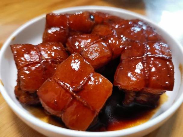 东坡肉,又名红烧肉,它以半肥半瘦的猪肉为原料,以不间断的火候煮熟。成品菜都是码得整整齐齐的小方块儿,肉质酥烂入味,色泽红亮,味醇汁浓,肥而不腻,香甜松软,营养丰富,入口即化。