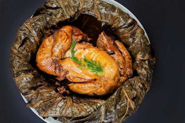 叫化童鸡又称黄泥煨鸡,是浙江杭州的传统名菜,选用优质嫩鸡,腹内填入各种香料,然后用泥巴封裹整鸡烧烤。