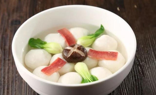 清汤鱼圆是浙江绍兴的一道特色菜。这道菜选用肉质细嫩、粘性强、吸水大、弹性足的花白鲢等为原料制作而成。鱼圆洁白如玉、色泽鲜明;口感滑嫩鲜美;搭配着油绿的青菜一起食用更是色香味俱佳。