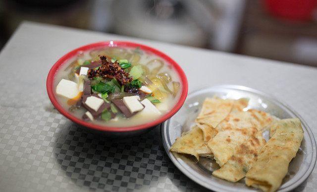 如果说道口烧鸡是安阳美食的巅峰之作,那么扁粉菜则是安阳人日常生活中不可或缺的一部分,尤其是作为早餐,更是深受喜爱。扁粉菜以红薯粉条为主料,搭配上猪血、豆腐、各种时令蔬菜以及精心熬制的高汤,一碗下肚,暖身又暖心。其精髓在于那用大骨头熬制数小时的高汤,汤色清澈而味道醇厚,粉条吸收了汤汁的精华,变得柔软而富有弹性,加之各种配菜的鲜美,每一口都是对味觉的极致享受。此外,扁粉菜中的辣椒油更是点睛之笔,香而不辣,为整道菜增添了几分诱人的风味。搭配上刚出锅的油饼,酥脆与软糯的完美结合,让人欲罢不能。