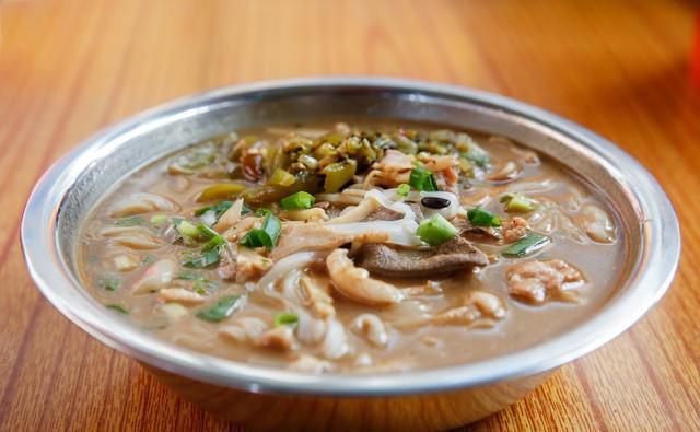 南宁老友粉是广西南宁市的一种特色小吃,以米粉、酸笋、豆豉等为主要原料。这种小吃具有酸辣可口、味道独特的特点,其酸香的口感来自于酸笋的发酵和豆豉的独特香味。
