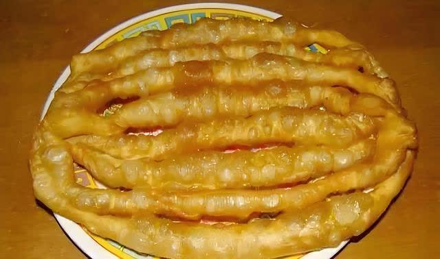 八批果子是聊城市的传统名吃,当地早餐的主要食品之一。这种油炸的小食品,因炸制成的果子分成八条,两端相连,为椭圆型,故名“八批果子”。经热油烹炸的面团各批都因气泡而膨胀,颜色金黄,其酥脆程度,落地碎不可拾。且可久放,是美味早点食品。