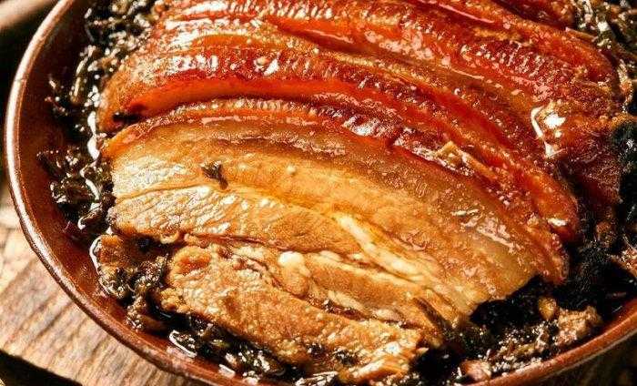 梅菜扣肉是广东传统名菜之一,以其醇厚的口感和独特的香味而受到赞誉。将猪肉和梅菜一起蒸制,肉质酥烂、梅菜香气扑鼻,让人食欲大增。