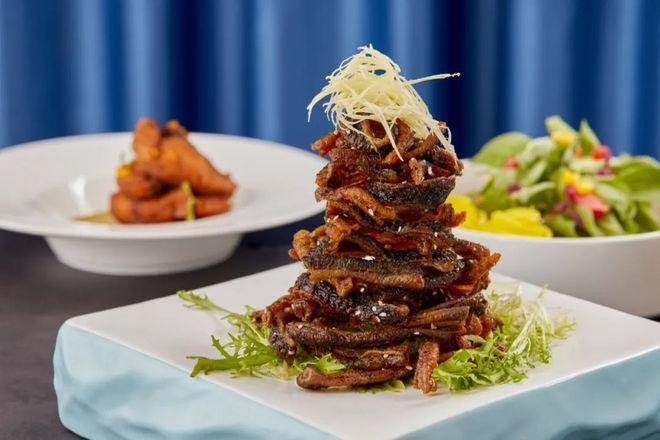 梁溪脆鳝,一道颇具特色的传统名菜。以鳝鱼为主料炸制而成,呈现出金黄酥脆的外皮和甜咸交织的口感。经过精心烹制后的鳝鱼段呈现出诱人的酱褐色,入口酥脆可口。而那甜咸交织的口感则让这道菜肴更具层次感。