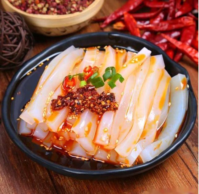刮凉粉是长沙的传统小吃,在炎热的夏天尤其受欢迎。黄兴路步行街的一些小吃摊的刮凉粉做得十分地道。将凉粉切成细条,加入辣椒油、花生碎、葱花、蒜末、酱油、醋等调料拌匀。凉粉爽滑细腻,酸辣可口,一口下去,清凉解暑,瞬间驱散夏日的燥热。因其制作简单,价格实惠,深受市民和游客的喜爱,常常是排队购买的热门小吃之一。