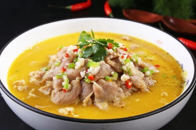 酸汤肥牛,以其酸辣开胃、肥牛鲜嫩而著称。这道菜选用新鲜的肥牛片与特制的酸汤一同烹制而成。酸汤的酸辣与肥牛的鲜美相互融合,让人在品尝中感受到了味觉的盛宴。制作时,需先将肥牛片焯水去腥,再将酸汤煮沸后,放入肥牛片煮熟即可。