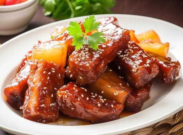 糖醋排骨,是中华美食中的经典之作。这道菜选用猪小排,经过油炸后,与特制的糖醋汁一同烹制而成。排骨外酥里嫩,酸甜可口,让人回味无穷。糖醋汁的调制是关键,需将糖、醋、番茄酱等调料按比例混合,煮至浓稠后,再与炸好的排骨翻炒均匀。