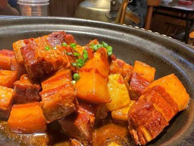 作为“十大经典名菜”之首的毛氏红烧肉,是毛家餐馆的招牌菜,可谓是风靡全国,在非常有名气。这道菜的特别之处在于全程不放一滴酱油,全靠糖色代替,既上色,又增加了甜味,一举两得,在炖制过程中,还会放少量辣椒,成菜色泽油亮红润,层次分明,肥而不腻,咸中带甜,甜中带辣,唇齿留香。