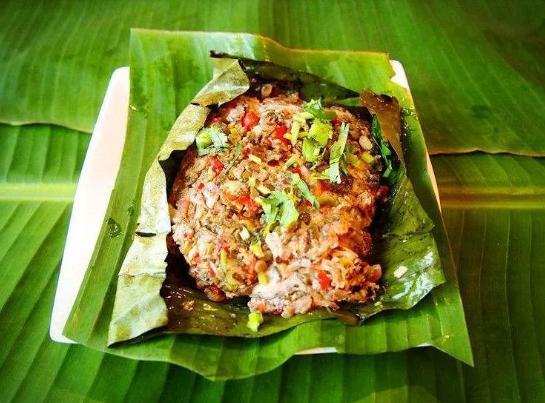 叶包蒸猪肉是西双版纳的一道特色美食。以猪肉为主要原料,搭配葱、蒜、姜、青辣椒、花椒粉、香茅草和盐等调料,经过特殊的制作工艺和独特的包裹方式制成。蒸出的猪肉香气扑鼻,口感鲜嫩,令人食欲大增。这道美食不仅味道独特,而且制作工艺复杂,体现了傣族人民对美食的精湛技艺和独特创新。