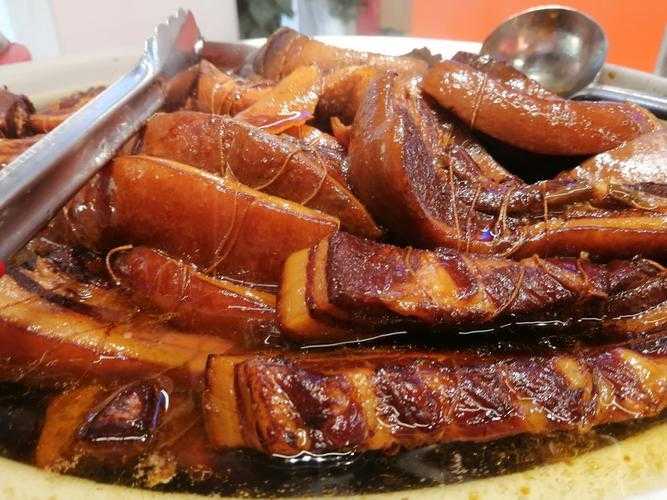 把子肉,作为鲁菜的经典名菜之一,以其独特的烹饪工艺和口感赢得了无数食客的喜爱。选用上好的猪五花肉,经过腌制、煮制、炸制等多道工序精心烹制而成,把子肉肥而不腻,瘦而不柴,入口即化,搭配一碗热腾腾的米饭和一份清爽的小菜,简直是人间美味。把子肉的独特之处在于其酱香浓郁,肉质酥烂,每一口都能感受到肉质的细腻与嚼劲,让人回味无穷。