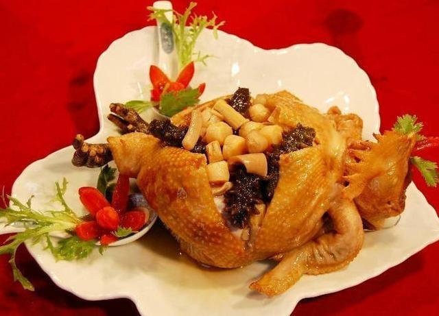 布袋鸡,作为济南夏津县的地方传统名吃,以其独特的制作工艺和口感赢得了无数食客的喜爱。布袋鸡选用整鸡为原料,通过巧妙的手法将鸡肉去骨,然后填充上丰富的馅料,如海参、鲍鱼、火腿等,再经过蒸制而成。布袋鸡肉鲜馅大、肥而不腻、香嫩可口,每一口都能感受到鸡肉的鲜美与馅料的丰富。布袋鸡不仅是一道美味的佳肴,更是一道展示烹饪技艺的艺术品。