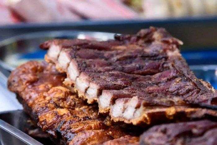 黄家烤肉,作为济南名吃之一,以其整猪烤制、皮黄酥脆爽口、肥而不腻而著称。黄家烤肉的制作工艺独特,选料严格,需要选用健康的活猪为原料,经过腌制、烤制等多道工序精心制作而成。烤制过程中,火候的掌握至关重要,需要烤制得恰到好处,使得猪肉皮黄酥脆、肉质鲜嫩多汁。黄家烤肉不仅口感绝佳,而且营养丰富,是一道不可多得的美味佳肴。