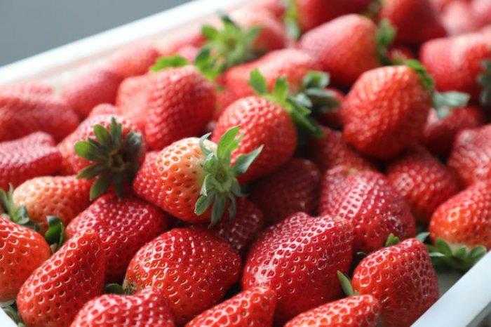 草莓外观鲜艳,口感甜美,富含维生素C、花青素等,有抗氧化、防衰老作用,能保护视力、改善肤色。