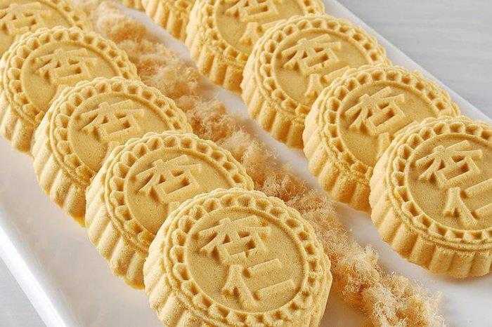 鸡仔饼是广州传统名点,甜中带咸,有冰肉和南乳香味,甘香松化,在广州的大街小巷随处可见。