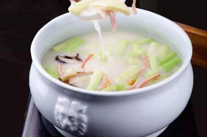 蒲菜脆嫩,奶汤浓白,口感清淡鲜美。