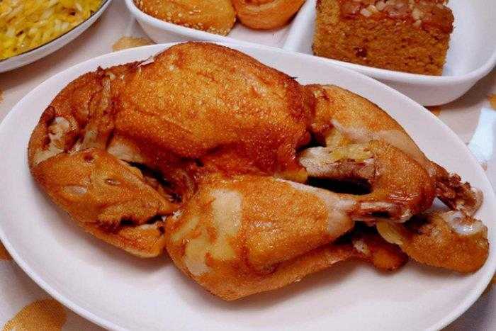 鸡肉酥烂脱骨,五香味浓郁,是德州传统名吃。
