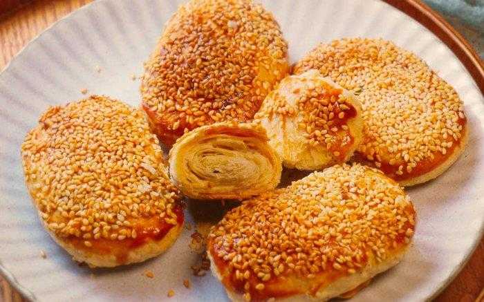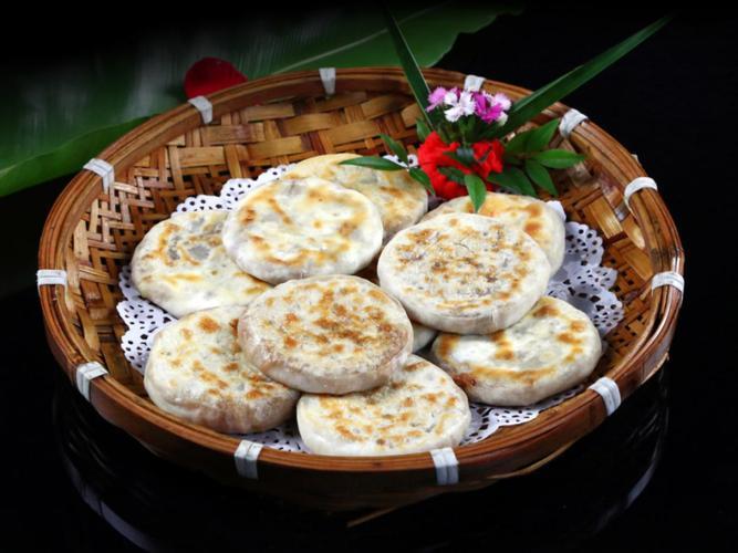 • 做法:面粉制成饼皮,包入梅干菜、豆沙等馅料,烤制而成。