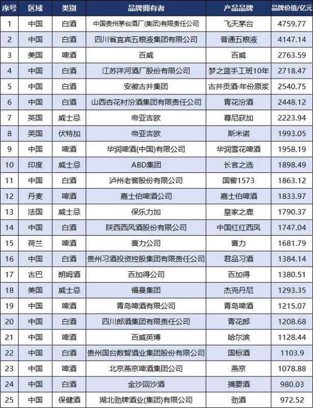 全球名酒100强:中国包揽前二,百威第3,尊尼获加第7