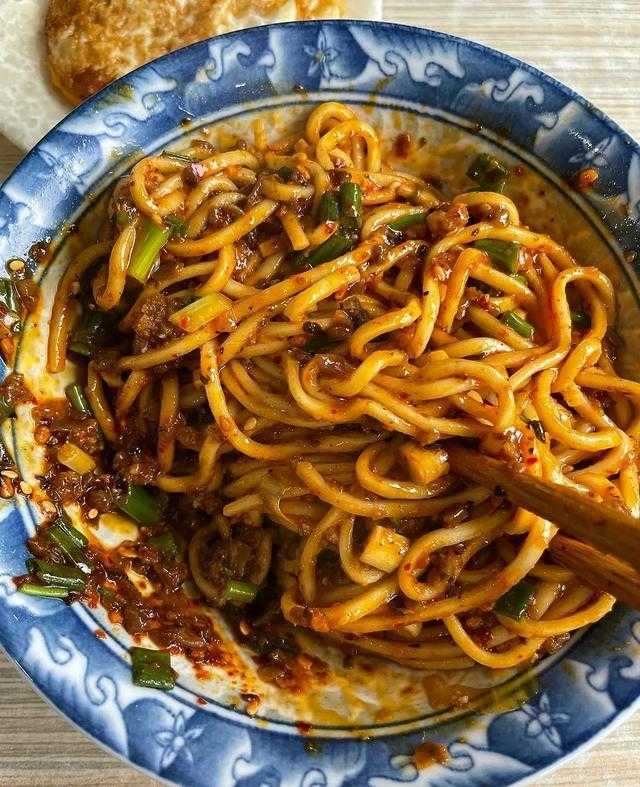 吃之前用筷子使劲搅拌,让每根面条都裹满酱料,那个香气,隔着老远都闻得到!芝麻酱的香浓配上辣椒油的麻辣,吃一口满嘴都是香,嘬得嘴上油亮亮的。