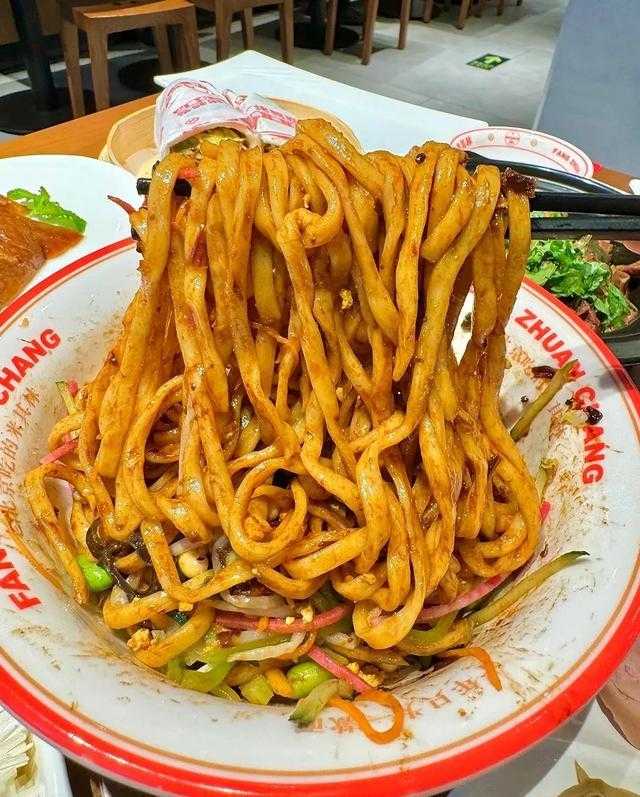 要说哪里的面条最辣,重庆小面必须拿第一!这面看着简单,就是普通的细面条,但灵魂全在那碗汤里。辣椒、花椒、姜蒜一大堆料熬出来的汤底,麻辣得够味。一口下去,先是麻,后是辣,最后才品出鲜香来。
