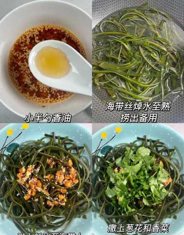 凉拌海带丝是保留其营养的最佳食用方式之一,清脆爽口的口感更能激发食欲。