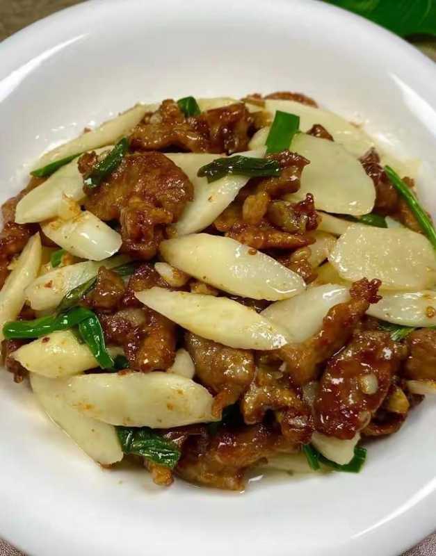 将山药切片与瘦肉同炒,既可保留其营养成分,又能使荤素搭配更为合理,是一道既美味又养生的家常菜肴。