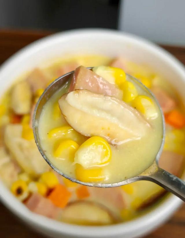 玉米是粗粮里的优秀代表,膳食纤维丰富,能帮助肠道蠕动。用它煮个浓汤,比啃玉米棒更暖胃,也更好消化。