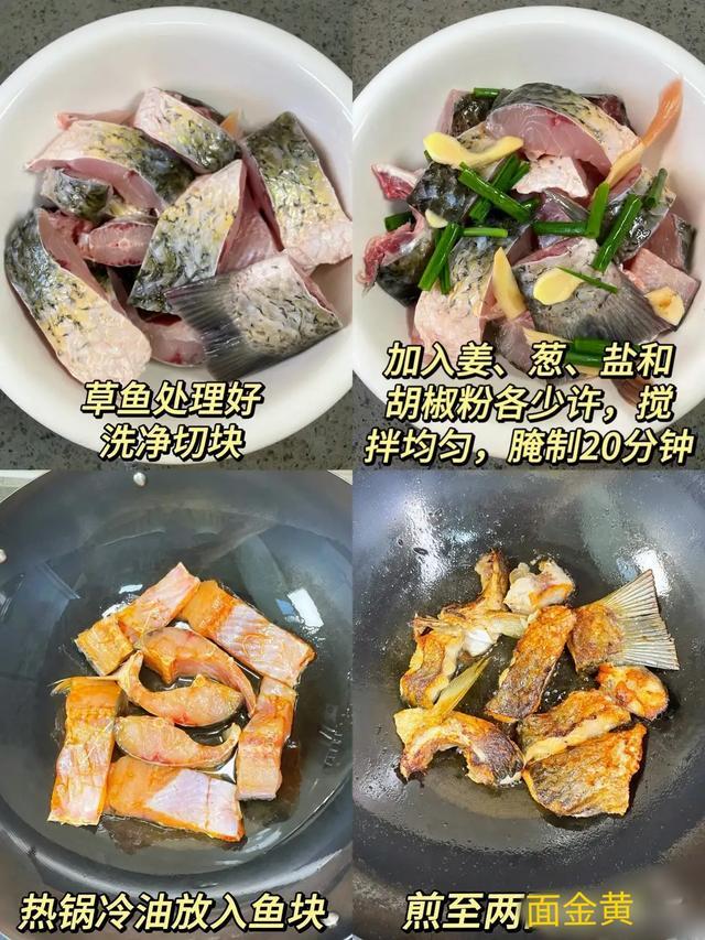 1. 用鲈鱼或草鱼中段,切大块,用料酒、姜片、少许盐腌15分钟。