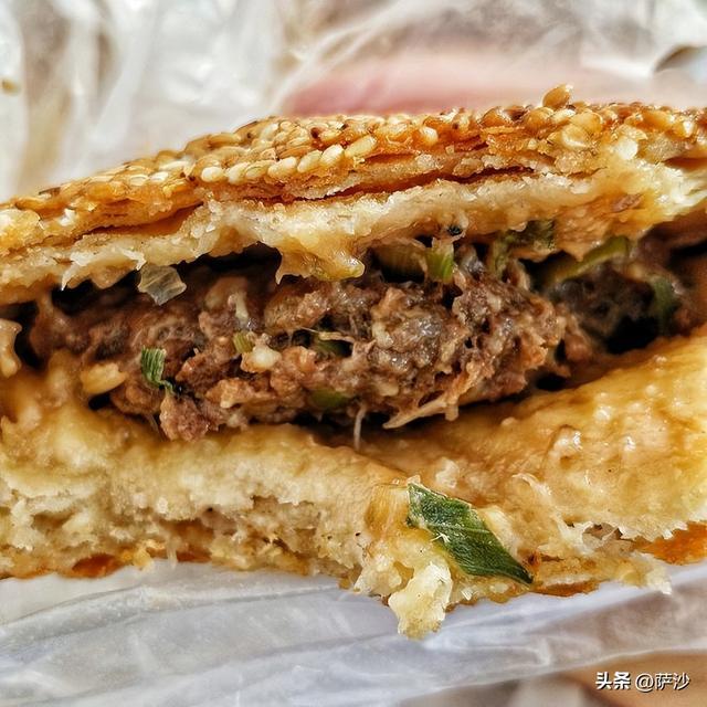 干肉烧饼中间是夹肉的,类似于今天夹心的肉烧饼。